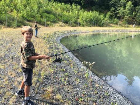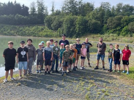 Dieses Jahr konnten zum ersten Mal Kinder der Gemeinden Eschenburg und Dietzhölztal unser Gewässer auf der Höhe 500 im Rahmen eines Ferienpassprogramms erkunden. 15 begeisterte Kinder wurden von unseren Jugendwarten Thomas Moos und Till Schneider und unserem stellvertretenden Gewässerwart Marcel Werner begrüßt. Los ging es mit einem kleinen Crashkurs in Fischkunde, bevor die Jungangler dann unter Anleitung selbst verschiedene Angeltechniken ausprobieren konnten. Es dauerte nicht lange, bis die ersten Fänge gemeldet werden konnten. Alle Beteiligten waren mit großer Freude und Elan dabei und zum Abschluss gab es noch gegrillte Würstchen und Forelle, die sich alle sichtlich schmecken ließen.
